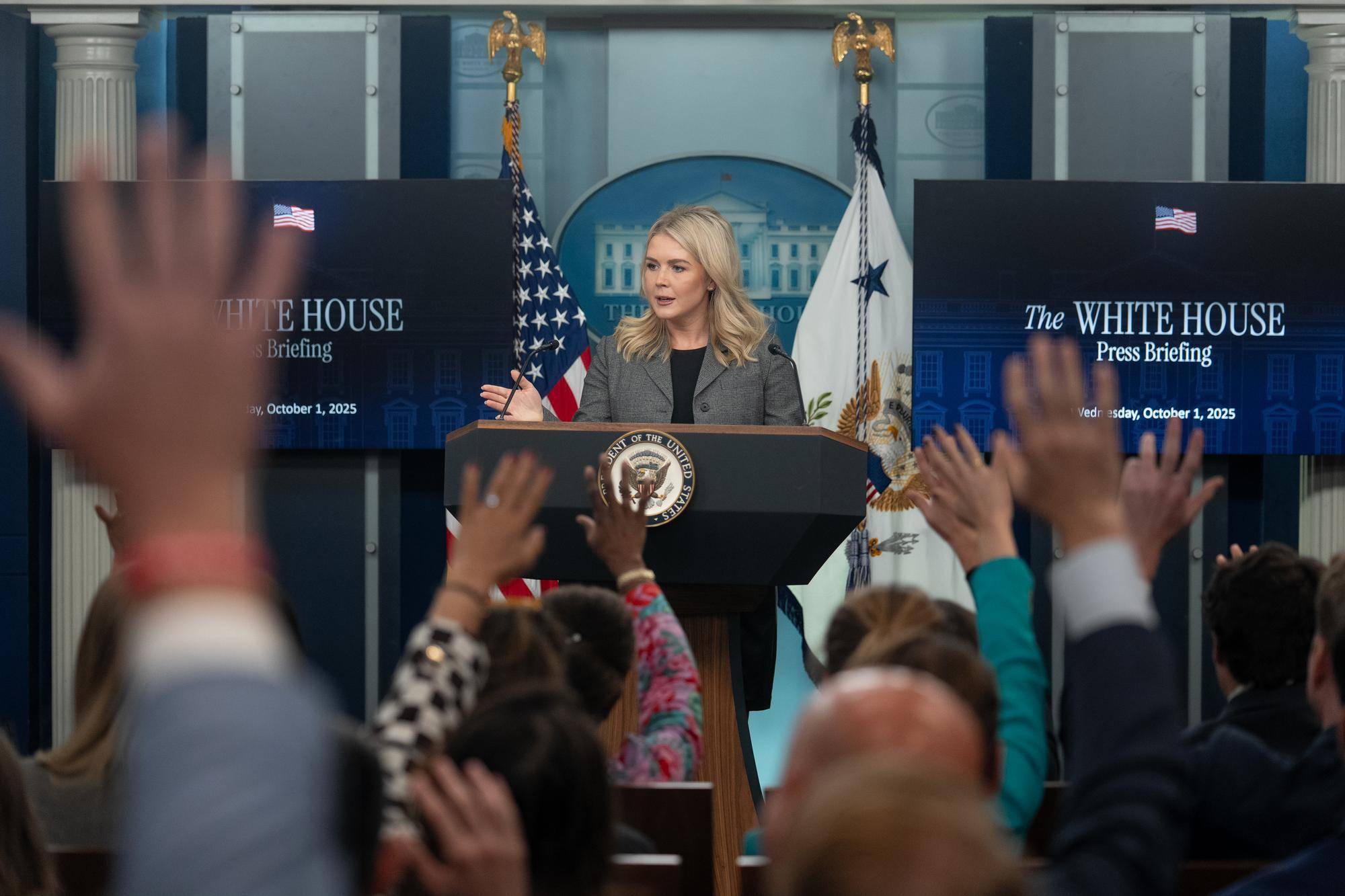 10月1日,在美国首都华盛顿白宫,白宫新闻秘书莱维特回答记者提问。新华社记者胡友松摄法新社援引一名乌克兰高级官员的话报道,美方在日内瓦会谈中继续施压乌方接受美方所提方案。这名官员说,尽管美方没有直接威胁将停止对乌援助,但乌方认识到这种可能性明显存在。莱维特24日称,特朗普“停止了这场战争的资金”,虽然美方仍继续通过北约向乌克兰提供大量武器,“但我们不可能永远这样做”。
