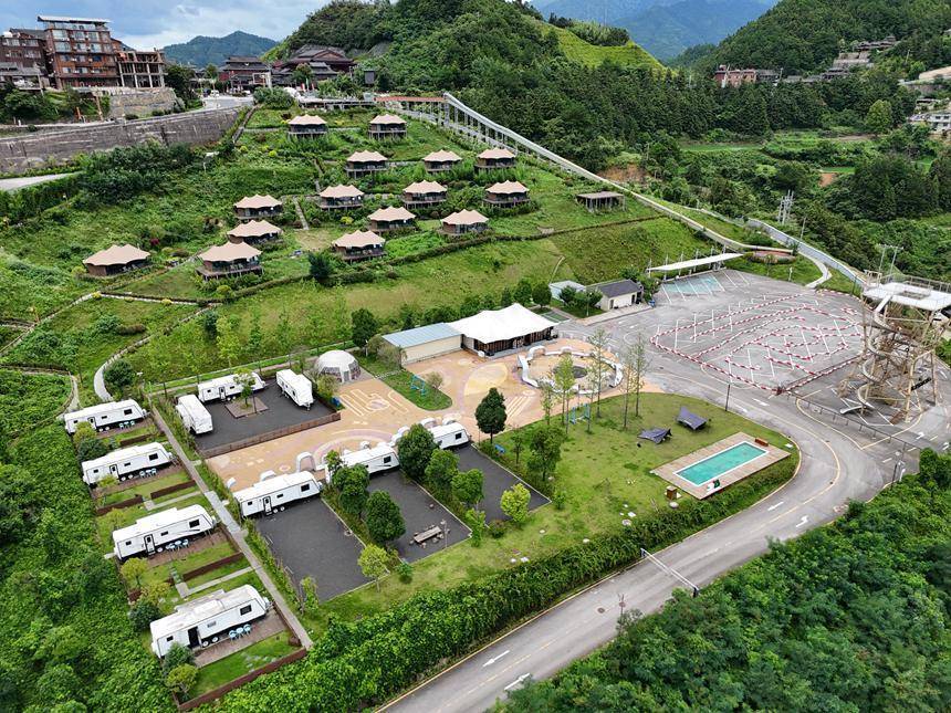 依托独特的地理区位,西江服务区以“交通线”串联“风景线”,打造了集房车营地、高端酒店、休闲体验于一体的野奢度假综合体。
